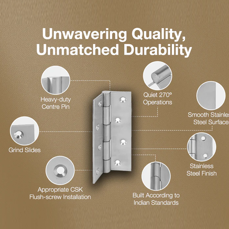 We manufacture high-grade stainless steel hinges that ensure durability, strength, and smooth functionality for long-term use.